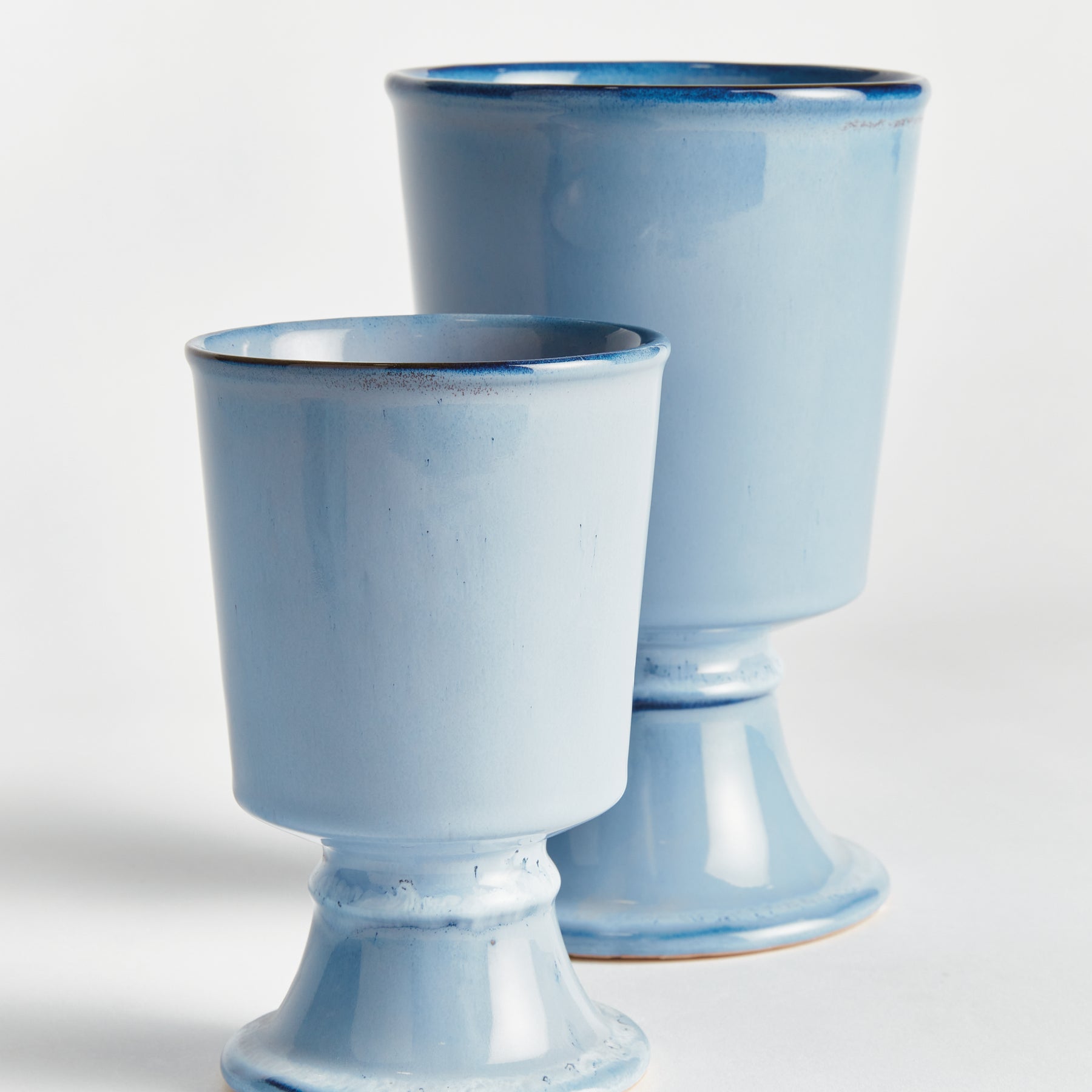 With traditional forms and footed base, these cachepots are classic silhouettes. What makes these pots unique is the deep, aqueous reactive glaze. Made of a high-fired stoneware, the rich depth of color is on full display.