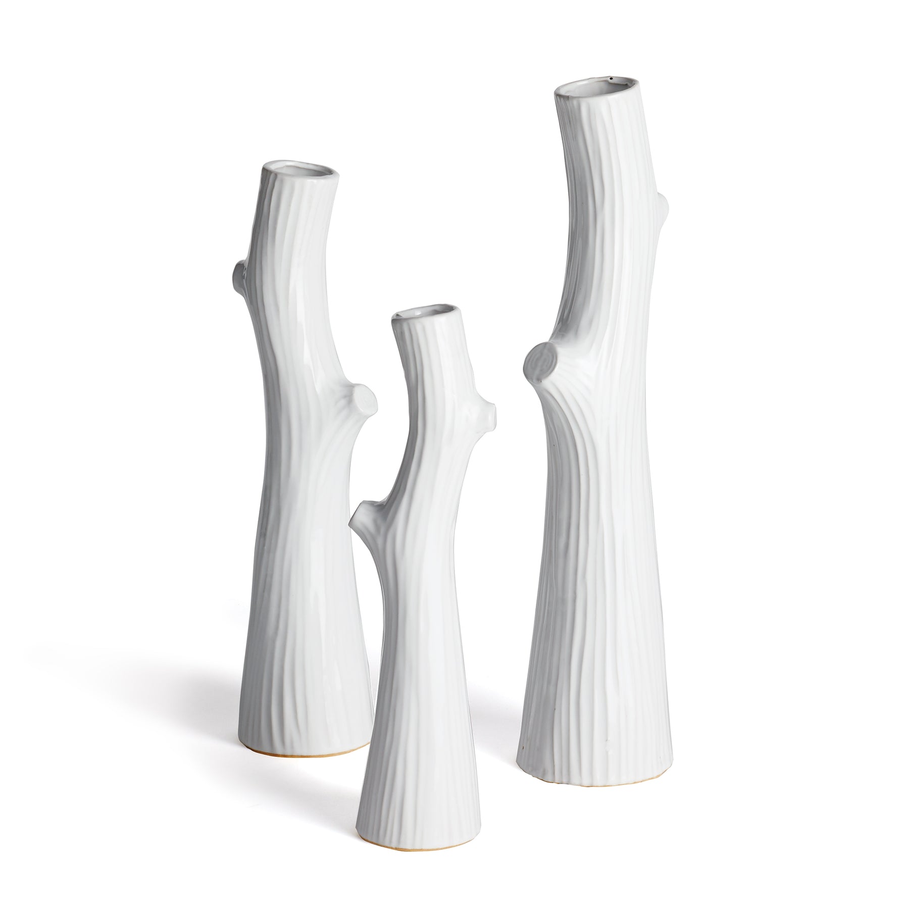 A trio of delicate faux bois stoneware vases are the perfect little accent for shelf or desk. Add some permanent blooms or display as is for a lovely touch of artistry.