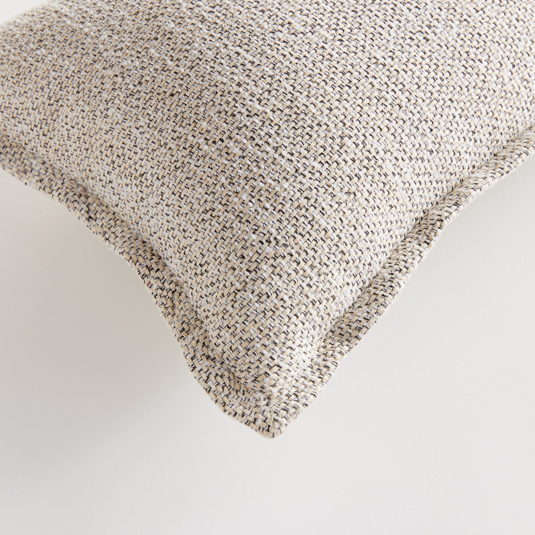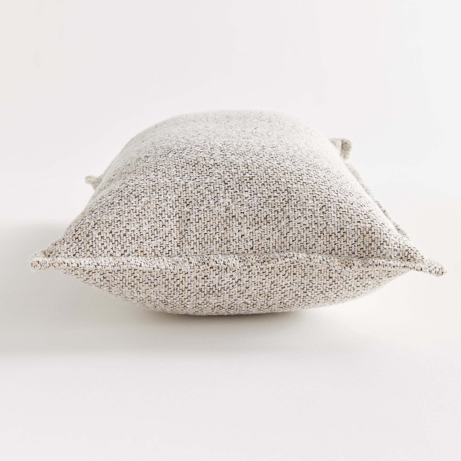 The indoor pillow that lives beautifully outdoors. Enjoy the upscale luxury and durability of Jacquard. With a woven gray tone, it plays well with any palette. This pillow is weather resistant and responsibly made. Filled with 100% recycled fibers.