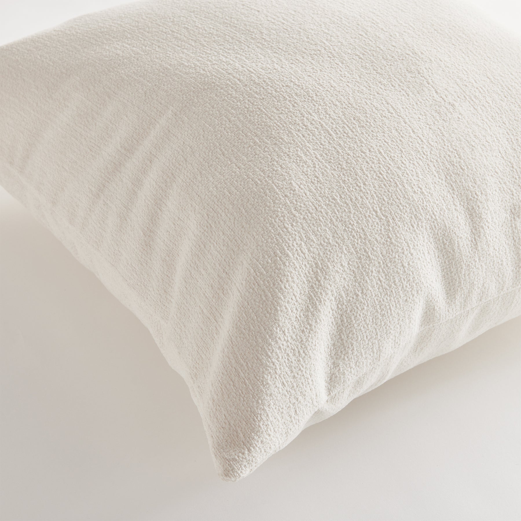 The indoor pillow that lives beautifully outdoors. Enjoy the upscale luxury and durability of Jacquard. With a woven light cream tone, it plays well with any palette. This pillow is weather resistant and responsibly made. Filled with 100% recycled fibers.