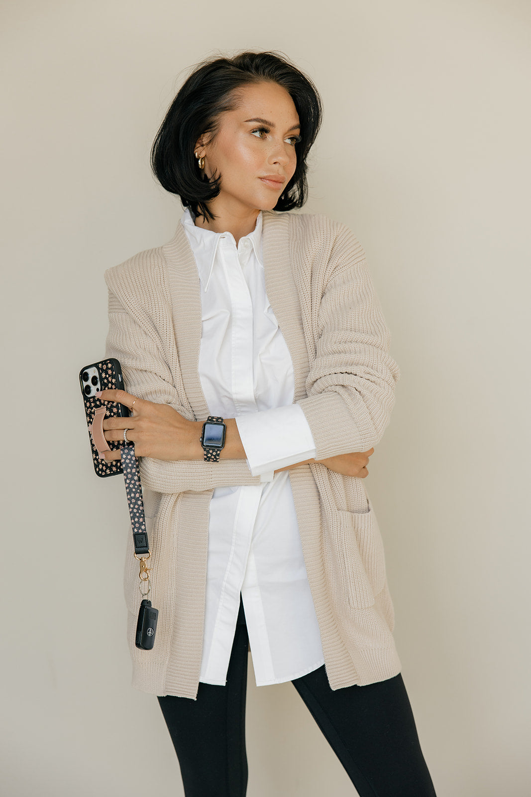 Strap Design: Neutral flowers on a black background
