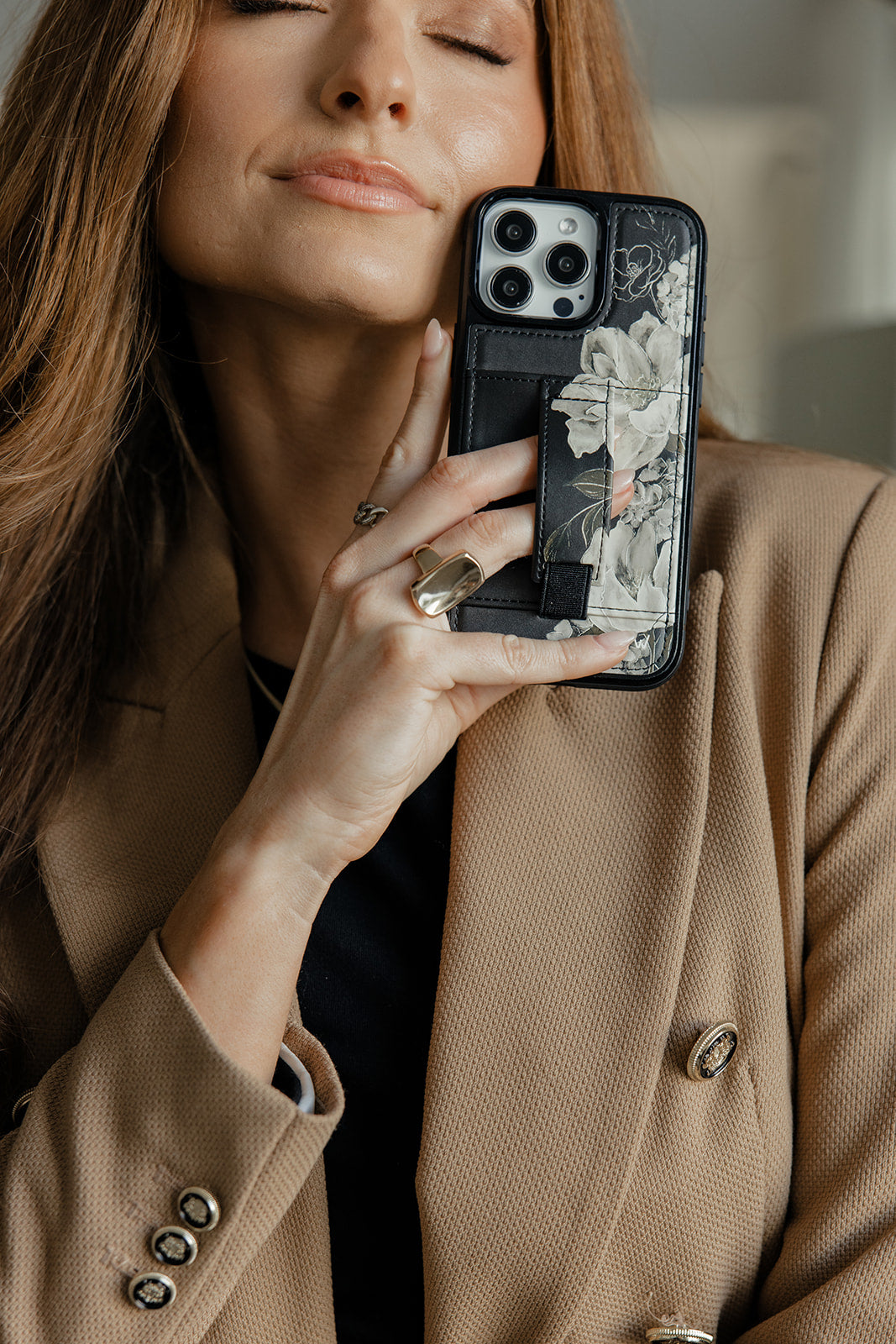 Case Design: Beige flowers on a black background
