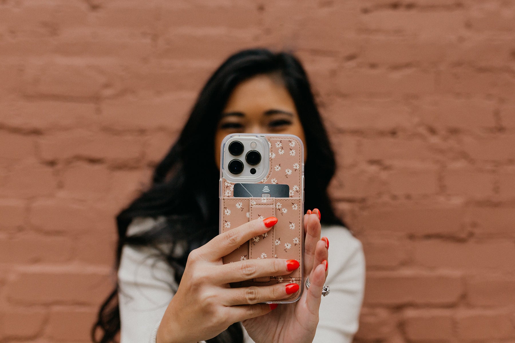 Finger Strap Color: Mauve background with small cream flowers