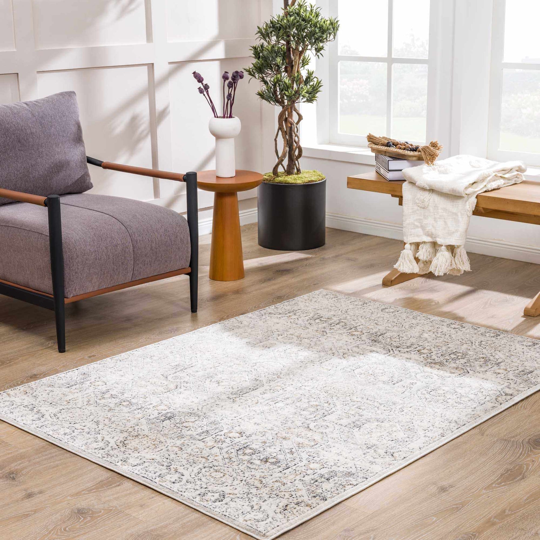 About: Featuring a Moroccan farmhouse style with oriental patterns, this gorgeous rug comes in gently balanced beige and gray tones that will add a subtle hint of refined sophistication to any space in your house. Perfect for farmhouse decor, living room setups and more, this farmhouse rug will bring warmth and style to any interior. |
