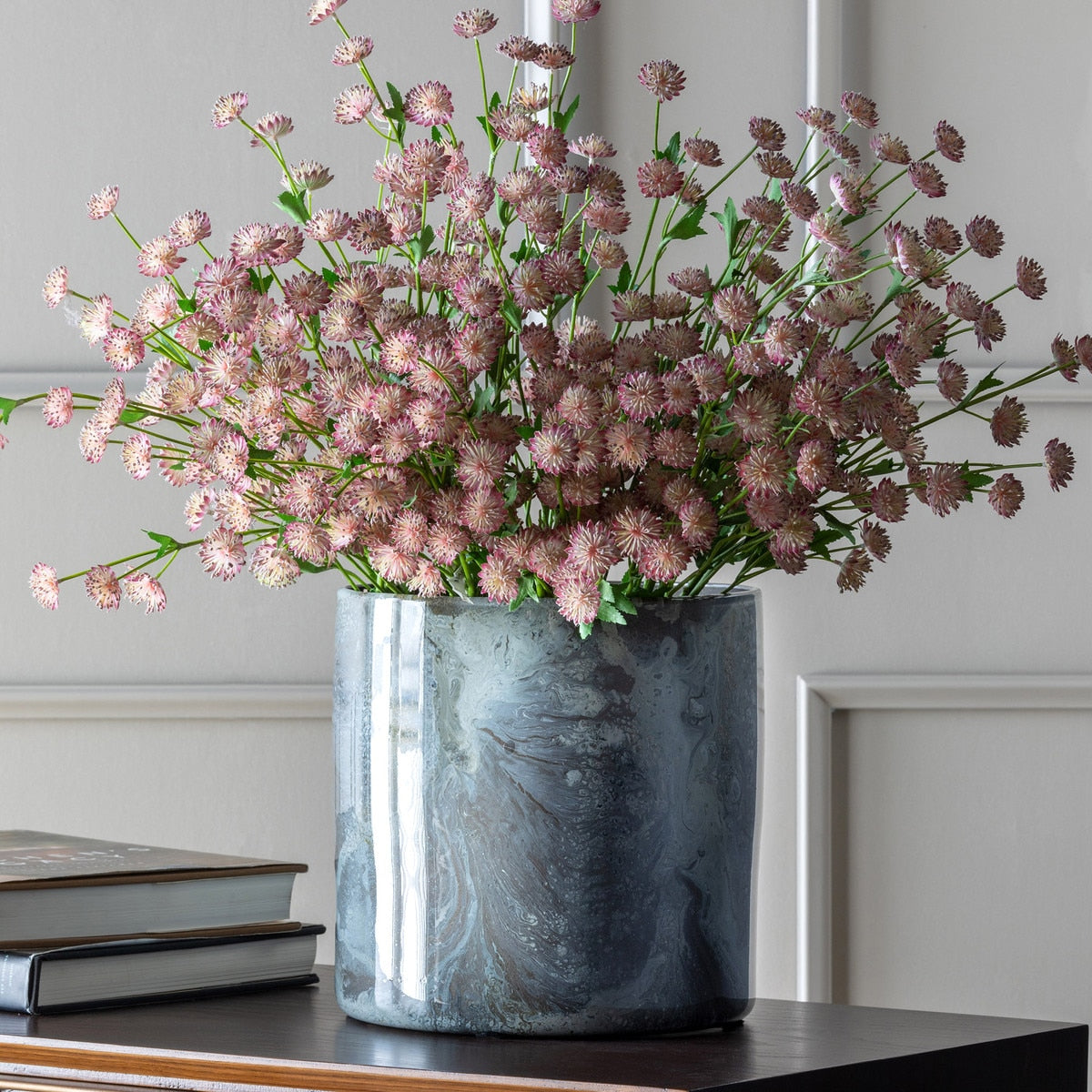 Our Dakota Artisan Glass Cylinder is one of the most exceptional glass pieces we offer. Hand blown using recycled glass, the color and pattern are accomplished by a three-part process including spray, ink and dye resulting in this one-of-a-kind artisan finish. Each piece will be unique and eye catching.