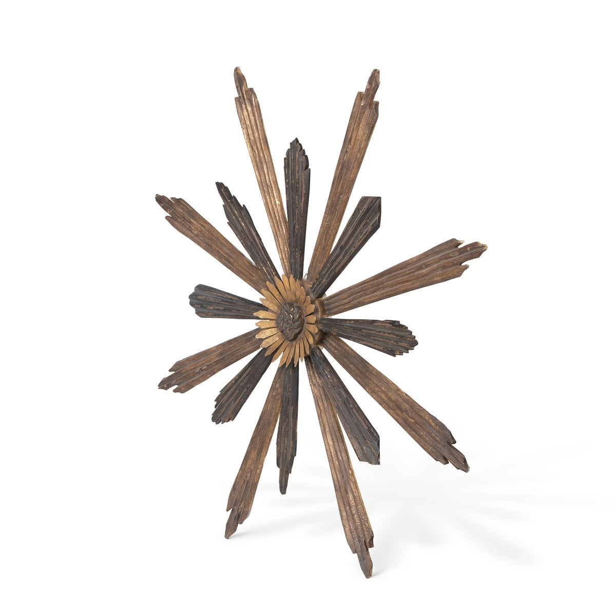 The Avignon Sunburst takes its name from the historic French city along the Rhône River, often described as “a medieval town with a youthful attitude.” This glorious wall adornment captures that spirit perfectly. Much like the ornate and fortified walls of the famed Palais des Papes, this handcrafted masterpiece is rich in intricate details and serves as an elaborate symbol of power. Crafted from a blend of wood and iron, each ray is individually assembled, painted, distressed, and finished with a gilded touch for a timeless, radiant effect.