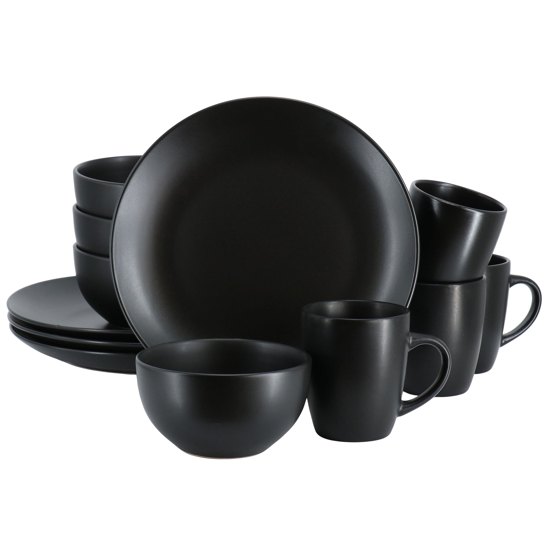 Set your dinner table with the sleek, modern beauty of the Gibson Home Everyday Plus 12 Piece Round Stoneware Dinnerware Set. The solid color with matte finish is sure to fit right in with your decor. Durable stoneware construction is sturdy for years of use, as well as dishwasher and microwave safe for convenient everyday use. With service for four, this set is perfect for individuals or families. Enjoy a delicious meal on this simple yet elegant dinnerware set today!